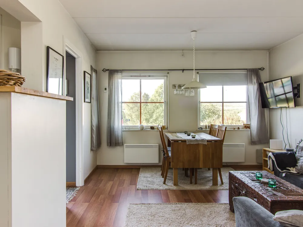Med ett sovrum med 2 sköna sängar och en bäddsoffa erbjuder den 2+2 bäddar. Lägenheten är utrustad för 4 personer men 2 bor bekvämast i den. I vardagsrummet finns förutom soffa också matbordet från vilket tittar man ut över sjön och Skarvarna. Tv finns med basutbud, liksom wifi och en Chromecast för att kunna göra det möjligt för våra gäster att streama sina egna TV tjänster. I det lilla köket finns all bekvämlighet i form av spis, micro, kyl/frys och diskmaskin. Badrum med duch och wc finns självklart. I hallen finns en pjäxtork och möjlighet till att hänga av sig ytterkläder. Parkering sker i direkt anslutning till lägenheten och det finns uttag för motorvärmare (ej möjligt att ladda elbil där) utemöbler gör det möjligt att sitta i solen och njuta efter en skön dag på fjället. En grill finns också om man skulle vilja laga mat ute.